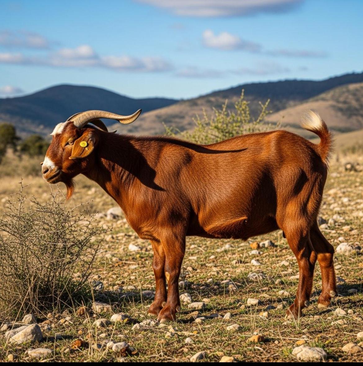 Cabrito de Raça Red Kalahari Red é uma raça de cabra de corte robusta e adaptável, originária da África do Sul. Seu nome vem do deserto do Kalahari, onde foi desenvolvida para oferecer resistência em condições áridas e adversas.